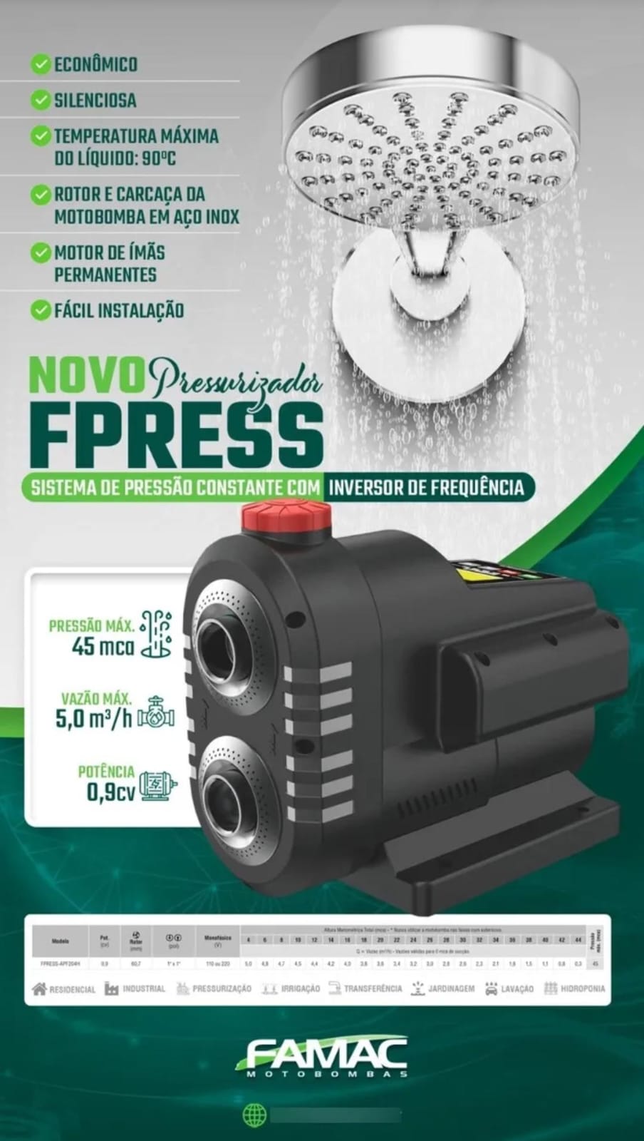 Seja o primeiro a avaliar “Pressurizador Famac APF204H 0,9Cv Monofásico 220/240v”